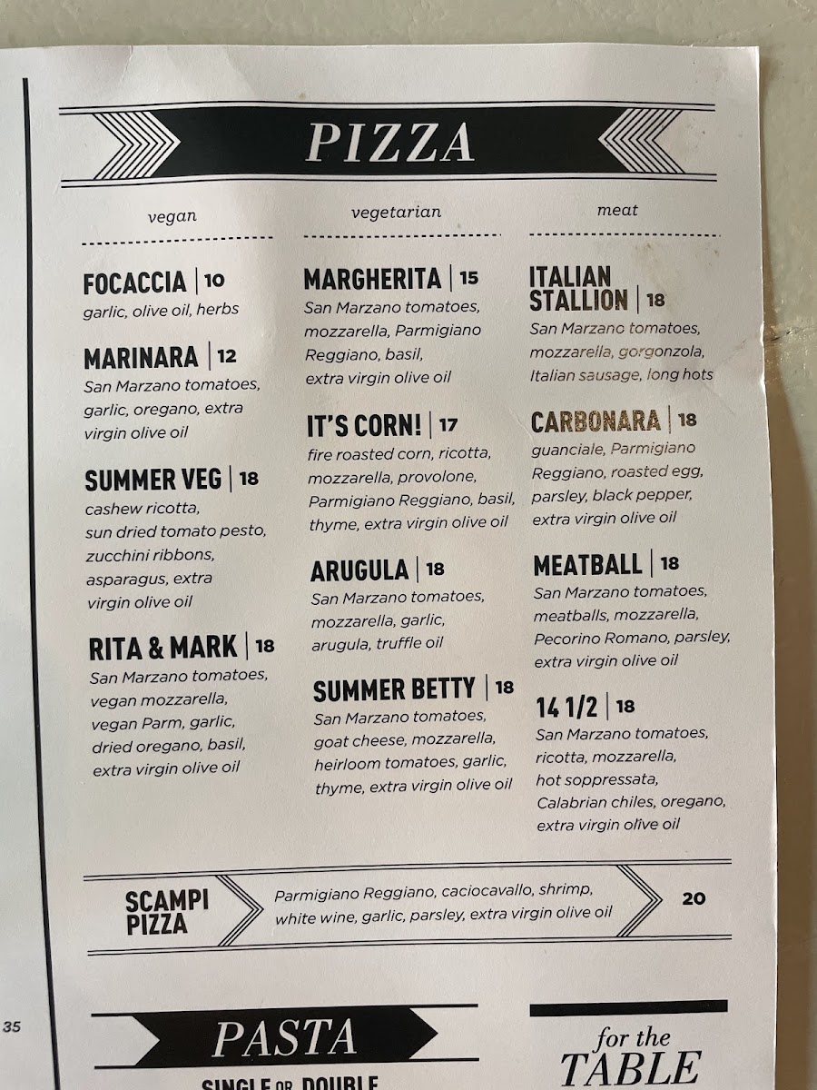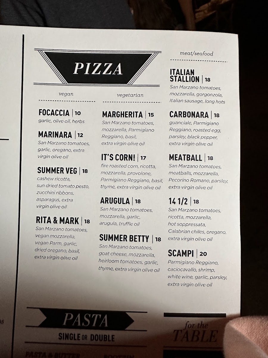 - For a classic taste, try the Margherita pizza, featuring San Marzano tomatoes and mozzarella, or the unique Rita & Mark with vegan options.